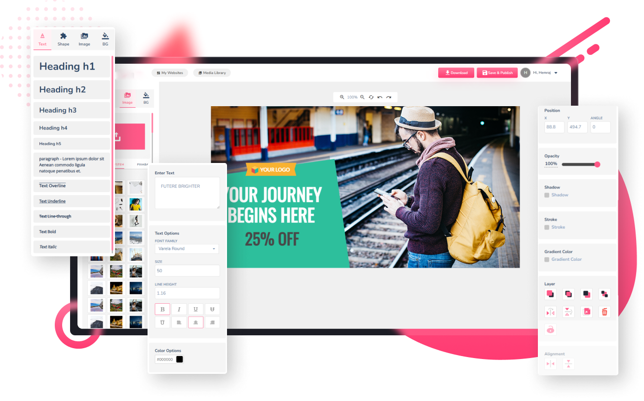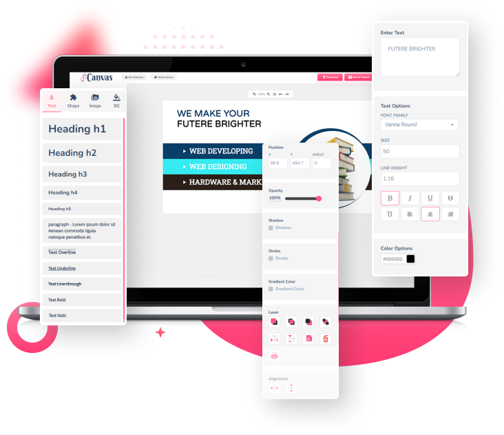 Canvas Editor Offers A Variety Of Typography Options To Customize Headings, Paragraphs, And Other Elements With Font Style, Color, Size, And Line Height. You Can Also Add Gradients, Strokes, And Shadows To Make Your Text Stand Out And Captivate Readers. With Typography, You Can Create Engaging And Impactful Content.
